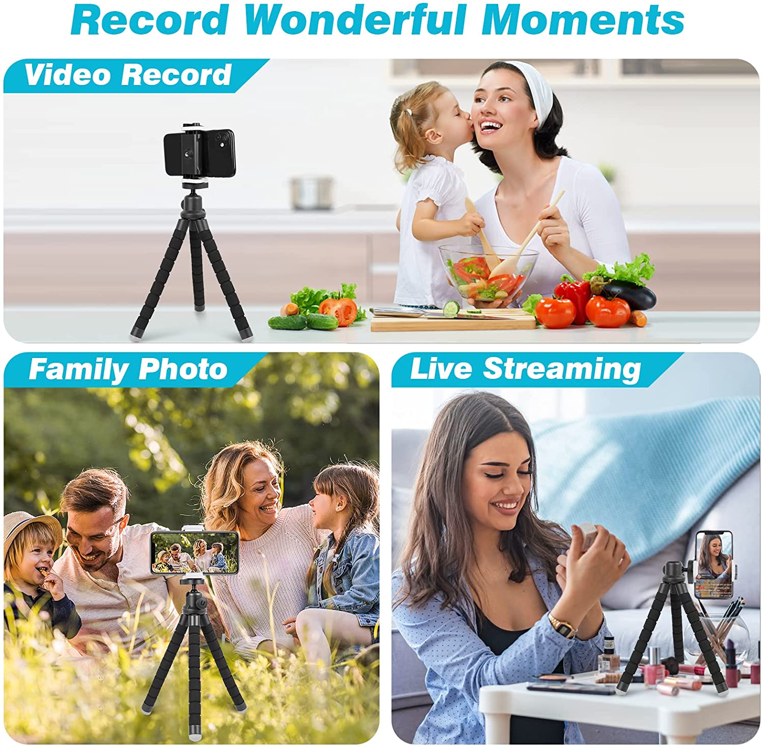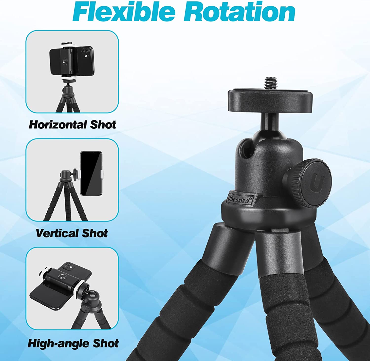 UBeesize Phone Tripod, Portable and Flexible Tripod with Wireless Remote and Clip, Cell Phone Tripod Stand for Video Recording(Black