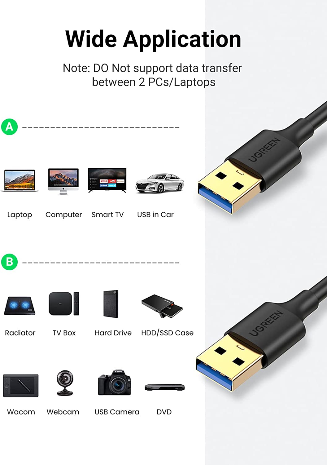 UGREEN USB to USB Cable, USB 3.0 Male to Male Type A to Type A Cable for Data Transfer Compatible with Hard Drive, Laptop, DVD Player, TV, USB 3.0 Hub, Monitor, Camera, Set Up Box and More 1.5FT