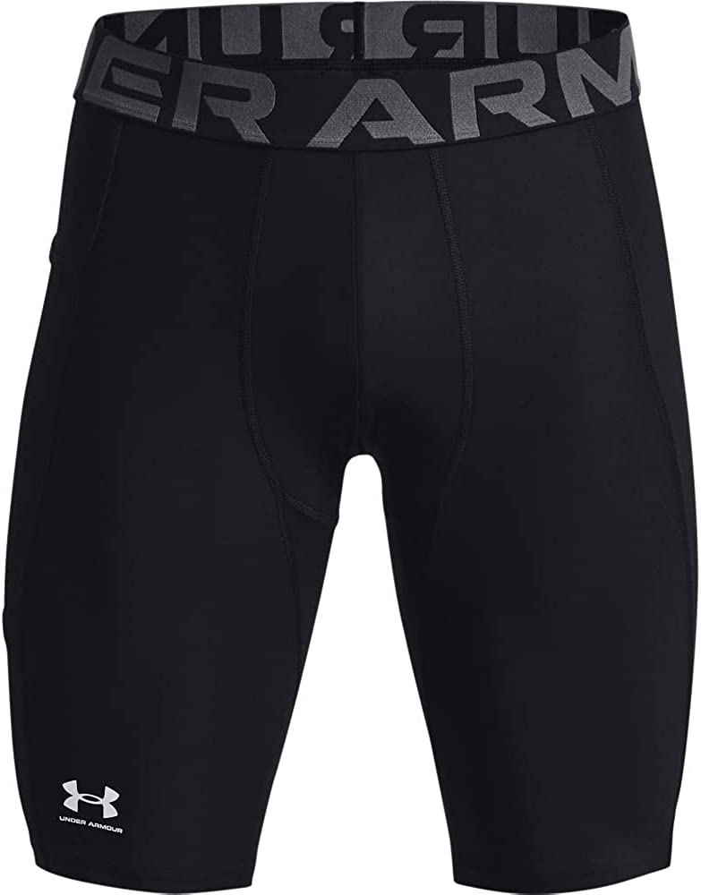HeatGear® Armour is our original performance baselayer—the one you put on first and take off last. So we made it extra comfortable by wicking sweat and stretching so you can move. No athlete can go without it. Super-light HeatGear® fabric delivers superior coverage without weighing you down. Strategic mesh panels for added ventilation where you need it. Material wicks sweat & dries really fast. Ergonomic design keeps seams off high abrasion areas & increases durability. Wide, exposed elastic waistband with wordmark detail. Updated gusset design provides ultimate support & comfort. Drop-in Strength Pocket™ on right side for easy storage. Inseam: 9"". No fly. Compression: Ultra-tight, second-skin fit. 84% Polyester/16% Elastane.