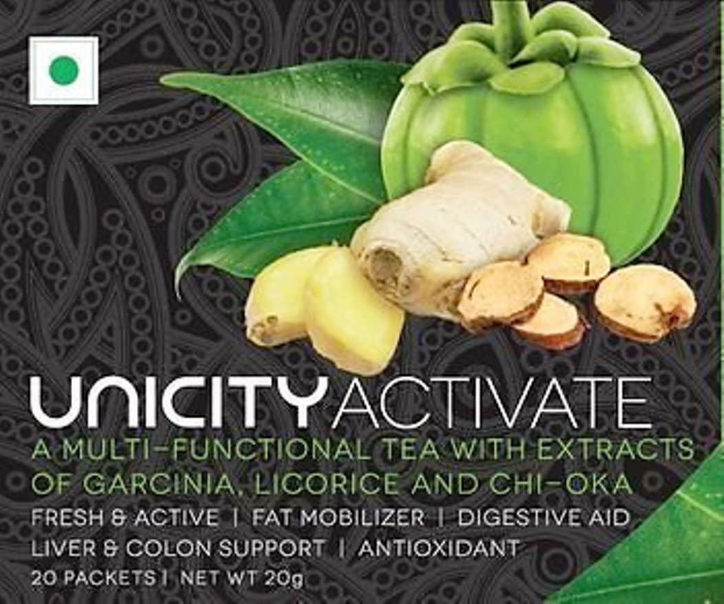 ACTIVATE Multi-Functional and Revitalizing Drink for Vigorous Health and Taste. The crafting of different types of teas continued to change over time. Unicity’s indigenously made Unicity ACTIVATE, with botanical extracts is very unique. Unicity ACTIVATE’s characteristic, includes a different taste and diverse health benefits with a feel of well-being. Whether you prefer spicy or sweet, tangy or fruity, ACTIVATE is bound to offer you the perfect culmination with a scintillating aroma that not only soothes the senses, but also rejuvenates you. It’s an exclusive combination made better with the Licorice extract, Chi-Oka Matcha, Green tea extract, Garcinia extract, Ginger extract and Piperine. Unicity ACTIVATE comprises of Licorice extract -beneficial for respiratory health, colon and liver support, acts as a mild laxative, relieves acid in stomach, aids in relieving heart burn and indigestion. BENEFITS Unicity ACTIVATE is one drink that does all of these in an extremely effective manner. Combining ancient herbal wisdom with modern-day ingenuity, Unicity India in collaboration with Unicity USA has carefully formulated Unicity ACTIVATE. We offer high quality product to serve you. We want our customers to relive an amalgamation of diversity in each and every sip of Unicity ACTIVATE to make your tea experience the best ever! UNICITY ACTIVATE HAS CHI-OKA EXTRACT GROWN EXCLUSIVELY IN PARTS OF JAPAN ONLY. UNICITY ACTIVATE IS EASY TO MAKE ANYWHERE, ANYTIME. IT HAS NO SUGAR ADDED IN THE PRODUCT. IT IS A MULTI-FUNCTIONAL TEA WITH NUMEROUS HEALTH BENEFITS. UNICITY ACTIVATE HAS A TINGLING LEMON AND PIPERINE FLAVOR. HOW TO USE RECOMMENDED Maximum 2 Sachets per day. MIX Mix the content of 1 sachet with 100 to 150ml of hot water. DRINK Stir well and drink.