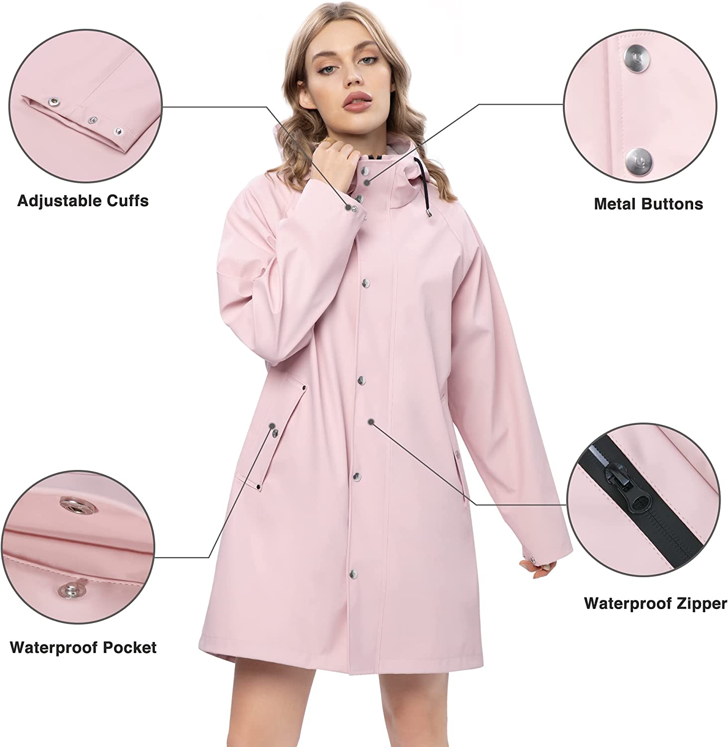 UNIQUEBELLA Raincoat for Women Waterproof Rain Jacket Hooded Outdoor Windbreaker Lightweight Trench Coat