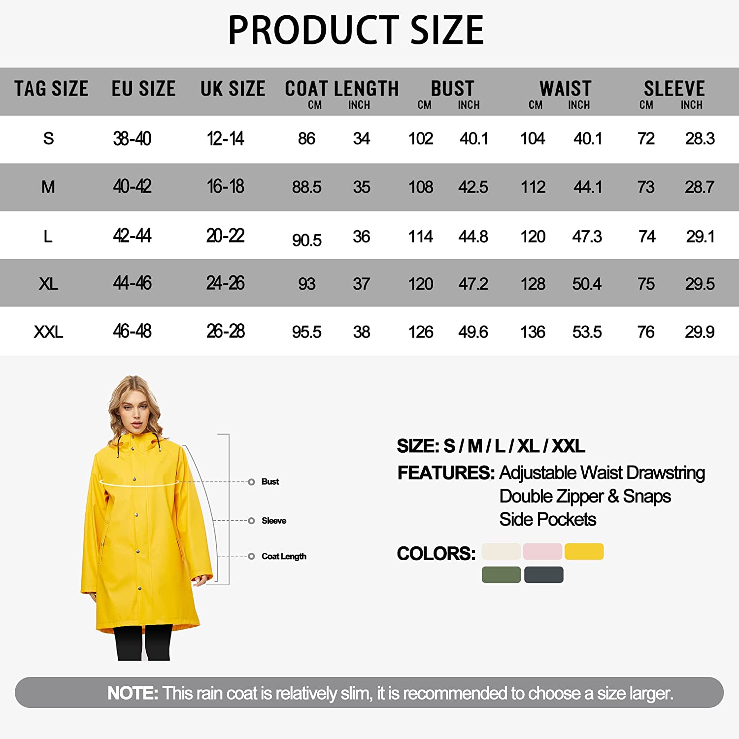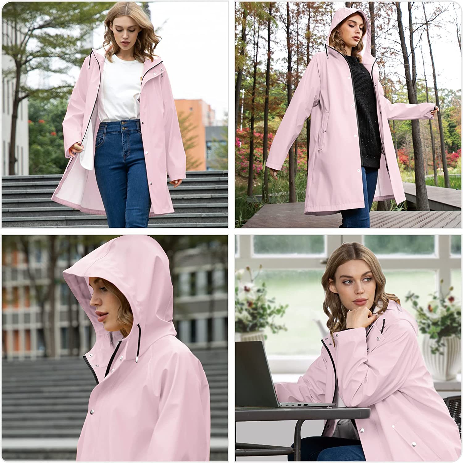 UNIQUEBELLA Raincoat for Women Waterproof Rain Jacket Hooded Outdoor Windbreaker Lightweight Trench Coat