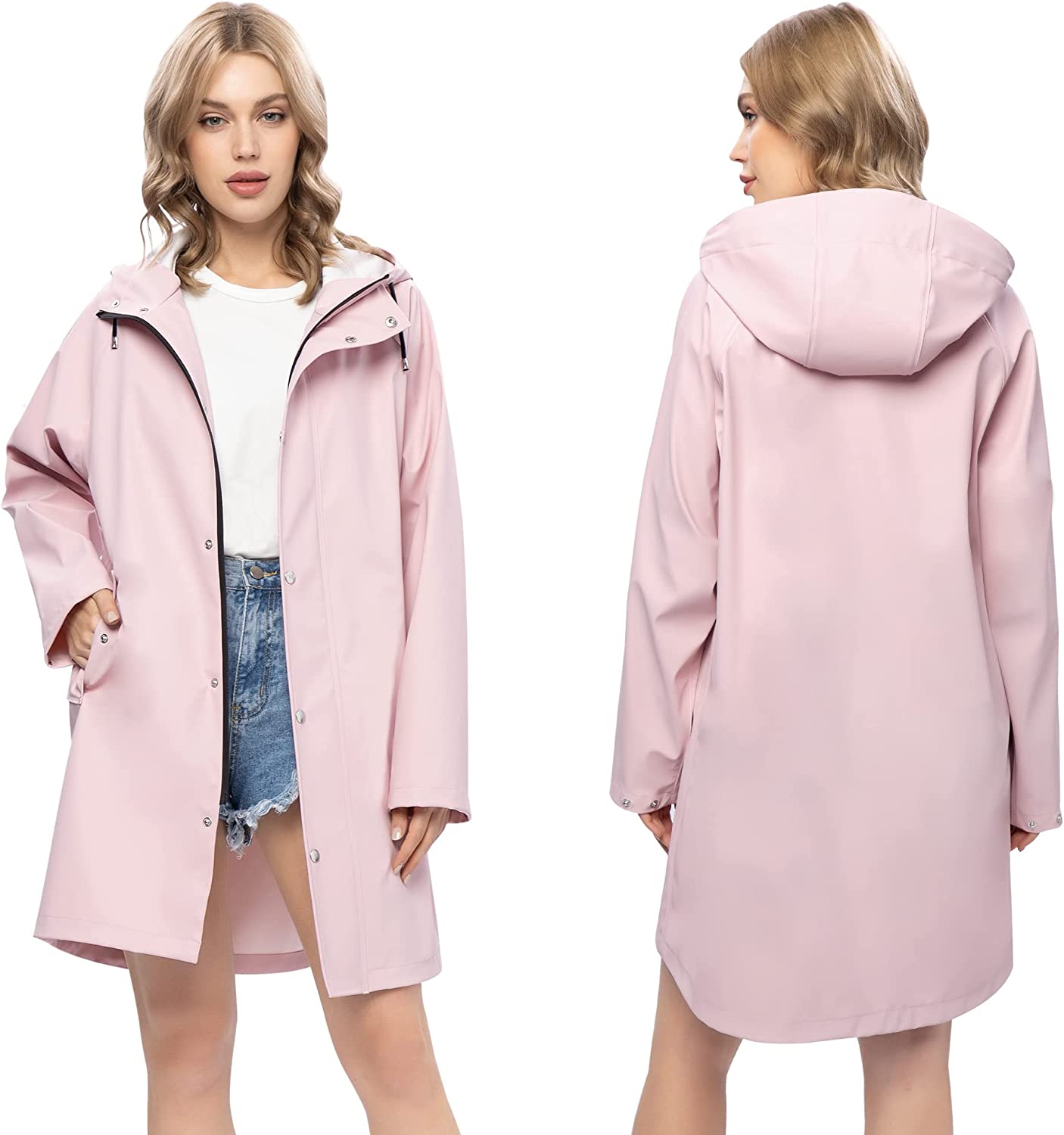 UNIQUEBELLA Raincoat for Women Waterproof Rain Jacket Hooded Outdoor Windbreaker Lightweight Trench Coat