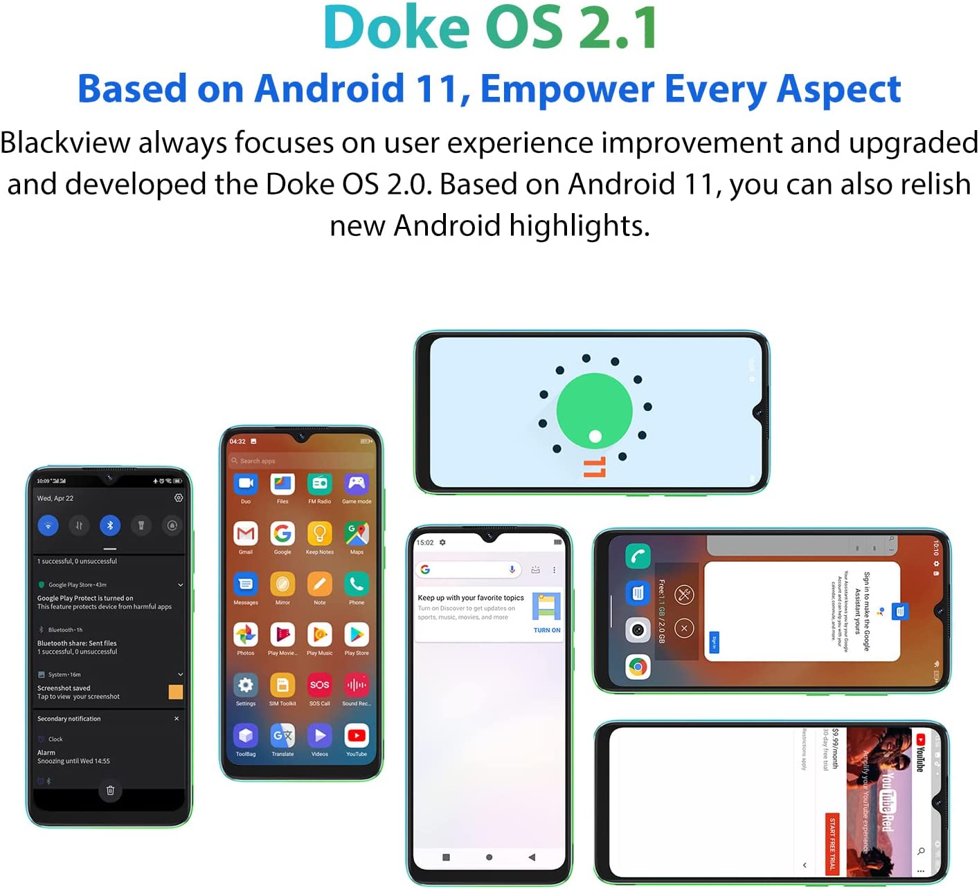 Unlocked Smartphones, Blackview A55, 2022 Unlocked Cell Phones Android 11, 6.528" HD+, 3GB RAM 16GB ROM, 4780mAh High Capacity Battery, 3-Card Slots, 4G Dual SIM, 8MP+5MP,Face ID, T-Mobile Phone,Black