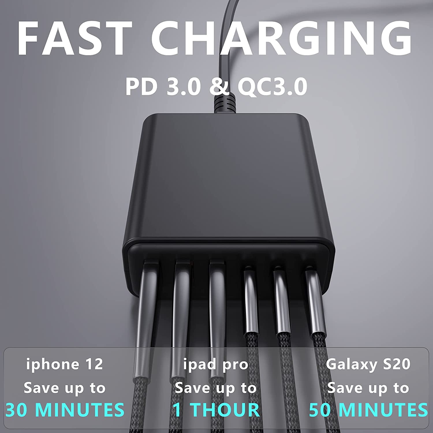 USB C Fast Charger, Sacrack 90W 6 Port USB C Charging Station, Portable Fast USB C Wall Charger PD Adapter 3 USB C and 3 QC USB A for All iPad, iPhone 13 12 11 Max Mini, Pixel Samsung Galaxy