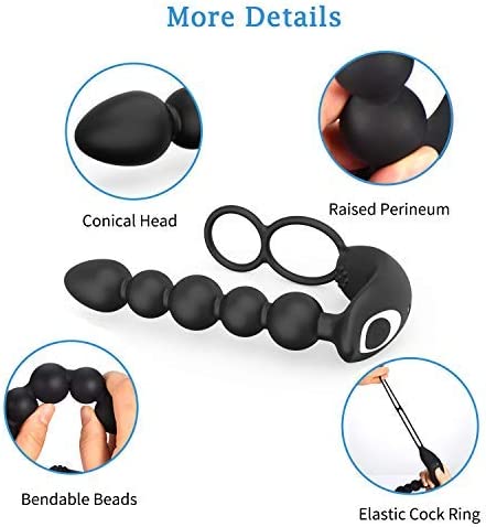 UTIMI Butt Plug Anal Sex Toys with Penis Ring & Anal Bead Rechargeable Vibrator Waterproof Prostate Massager, Ejaculation Enhancement Erection Prolonger, 3 Powerful Motors Built-in