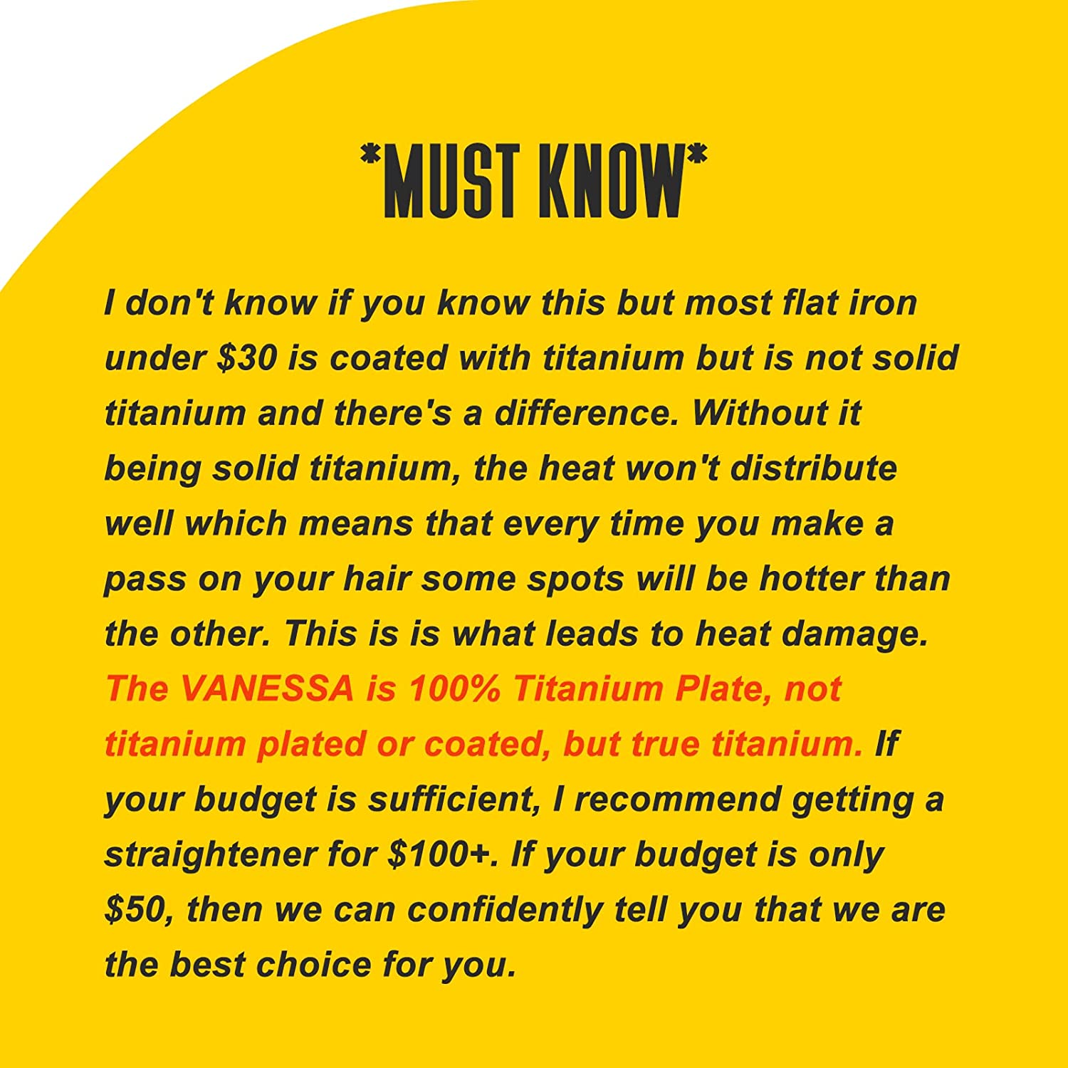 VANESSA PRO Flat Iron Hair Straightener, 100% Pure Titanium Flat Iron for One Pass to Achieve a Sleek Look, Curls Beautifully & Straightens Well - 1 inch