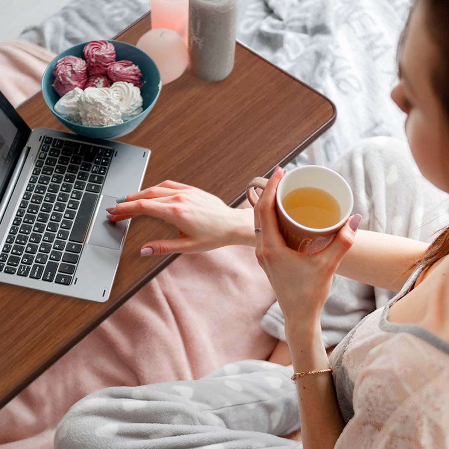 Vaunn Medical Adjustable Overbed Bedside Table With Wheels (Hospital and Home Medical Use)