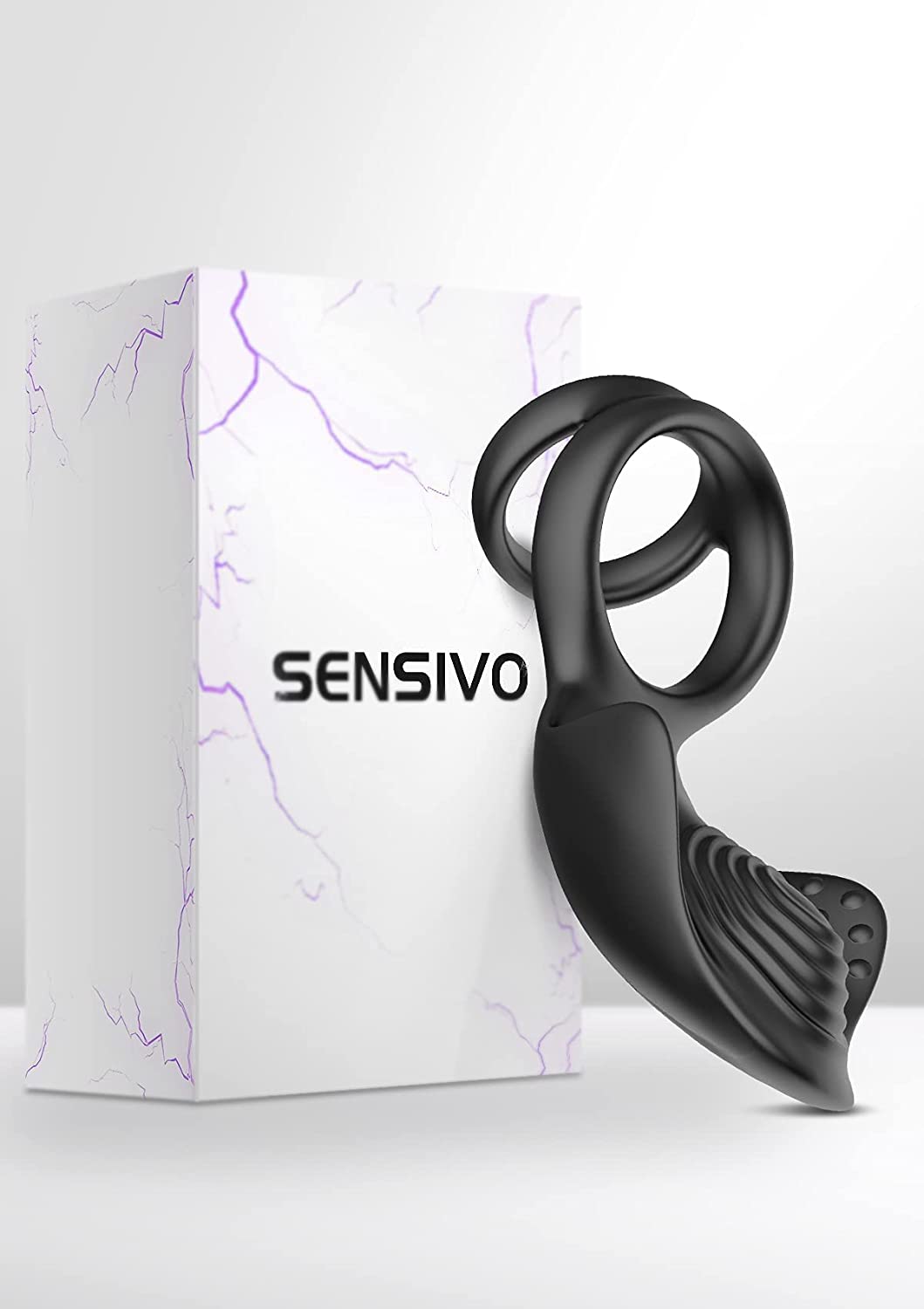 Vibrating Cock Ring for Couple, SENSIVO 3 in 1 Dual Penis Rings with 10 Vibration Modes, Rechargeable Mens Vibrator for Perineum or Clitorals Stimulation and Erection, Adult Sex Toys and Games