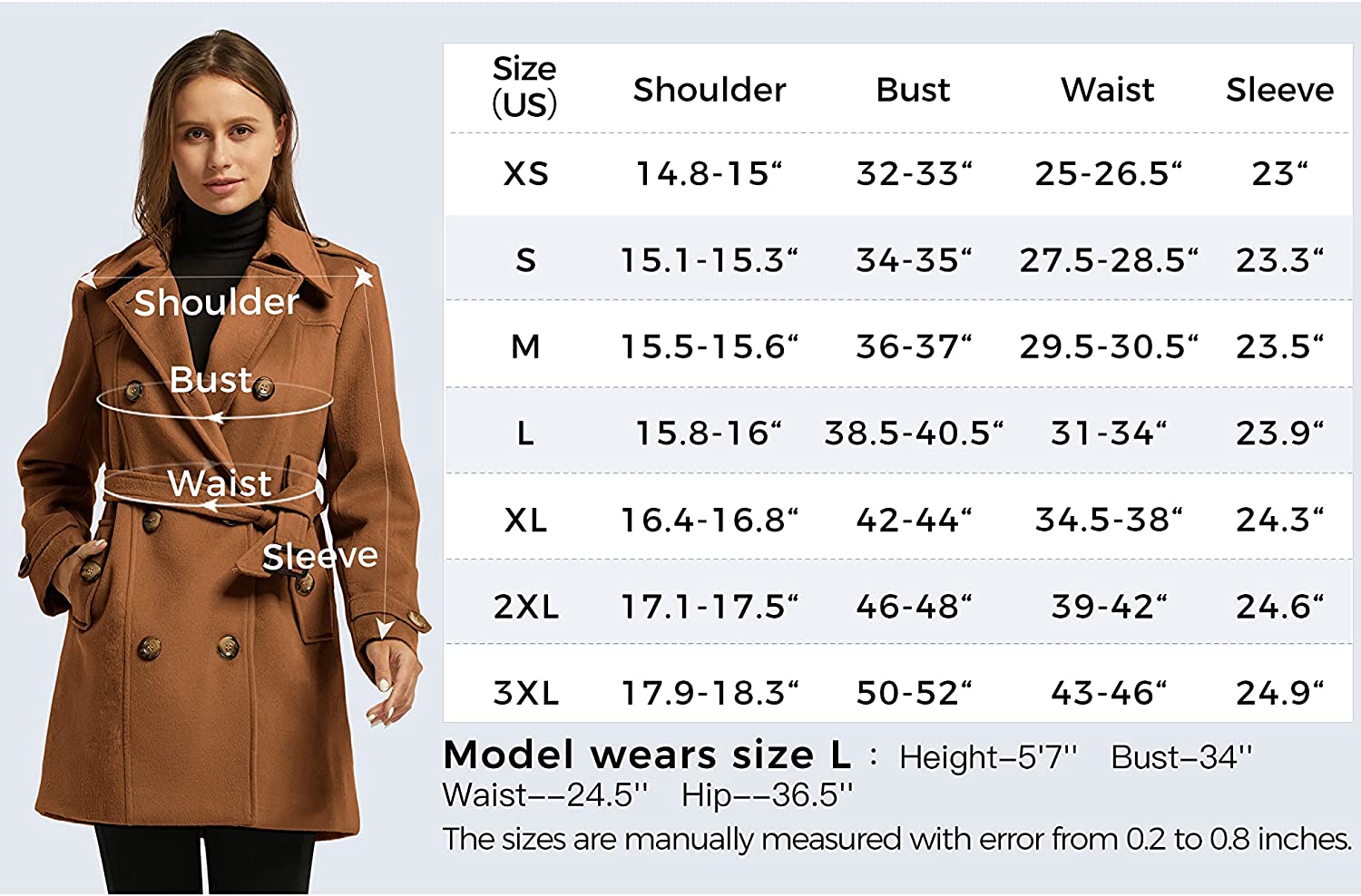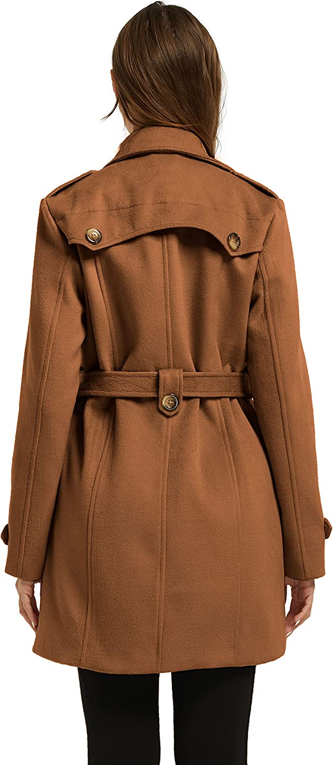 Wantdo Women's Double Breasted Pea Coat Winter Mid-Long Trench Coat with Belt