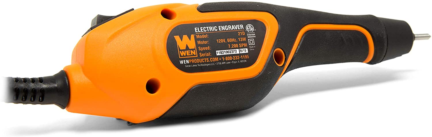 Remember when your coworker stole your favorite stapler? Prevent “accidental” theft from ever happening again with the WEN Engraver. Our powerful yet compact engraving tool allows users to carve initials, pictures or whatever else their heart desires into plastic, ceramic, leather, metal, glass, wood, and more. Perfect for tools, tool chests, and more. Simply plug it in, flick the switch on the back, and start engraving. The 5-position depth adjustment dial helps control the length of the stroke for both fine and deep engravings. The included tungsten-carbide tip makes for reliable and durable operation. The included two-piece stencil set provides a fun variety of designs and symbols to engrave, including letters, numbers, and more. And because it’s a WEN product. a stocked inventory of replacement parts, and a friendly customer helpline. Remember when you could mark your territory? Remember WEN.