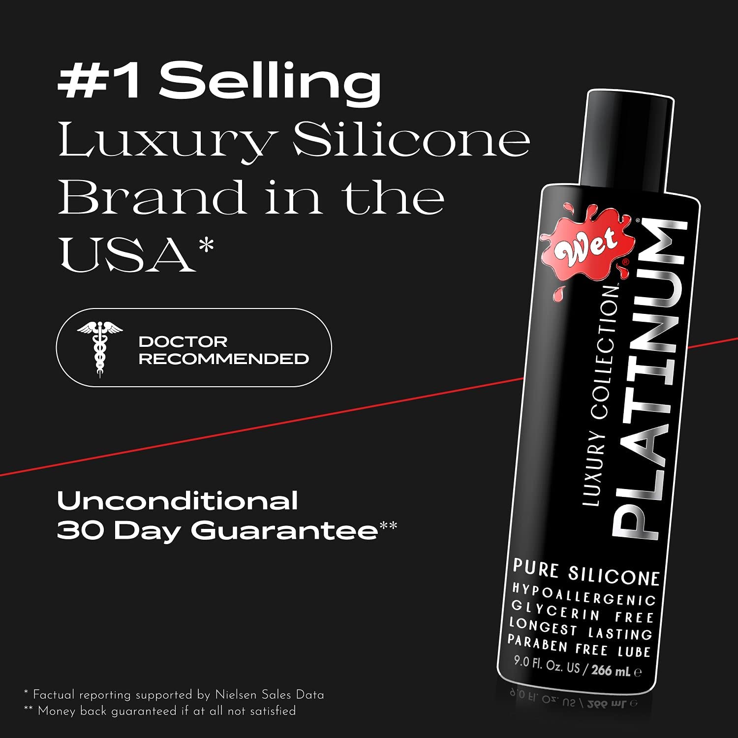 Wet Platinum Silicone Based Sex Lube 4.2 Ounce Premium Personal Luxury Lubricant for Men Women & Couples. More Long Lasting Than Water Based. Condom Safe Hypoallergenic Glycerin Paraben Free Intimacy