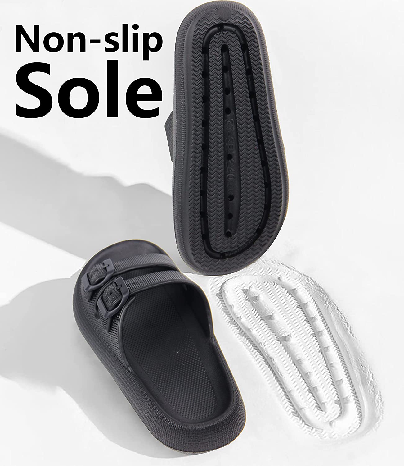 Weweya Pillow Slippers for Women and Men - Cloud Slides - Double Buckle Adjustable - EVA Flat Sandals