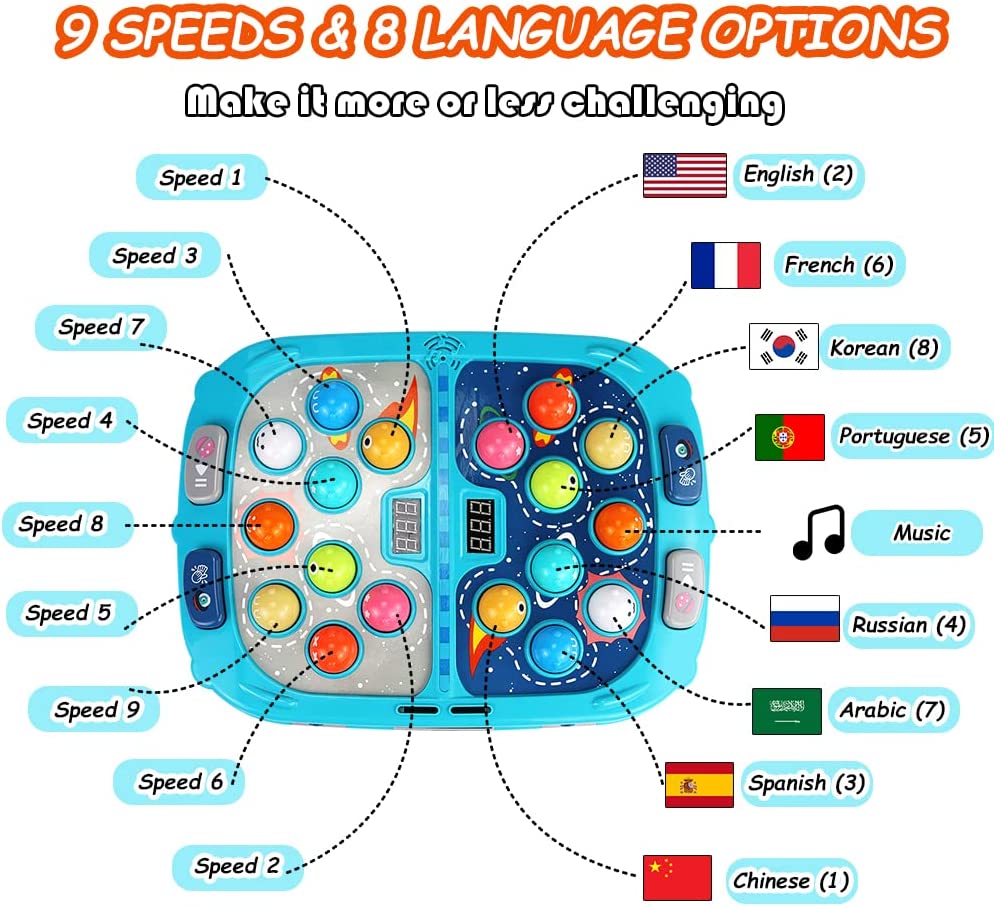 Whack A Mole Game, Toys for 3+ Year Old Boys/Girls, Whack A Mole Game for Toddlers, Pounding Toy for 3 4 5 6 7 8+ Kids, Interactive Educational Toys with Sound and Light, PK Mode with 2 Hammers