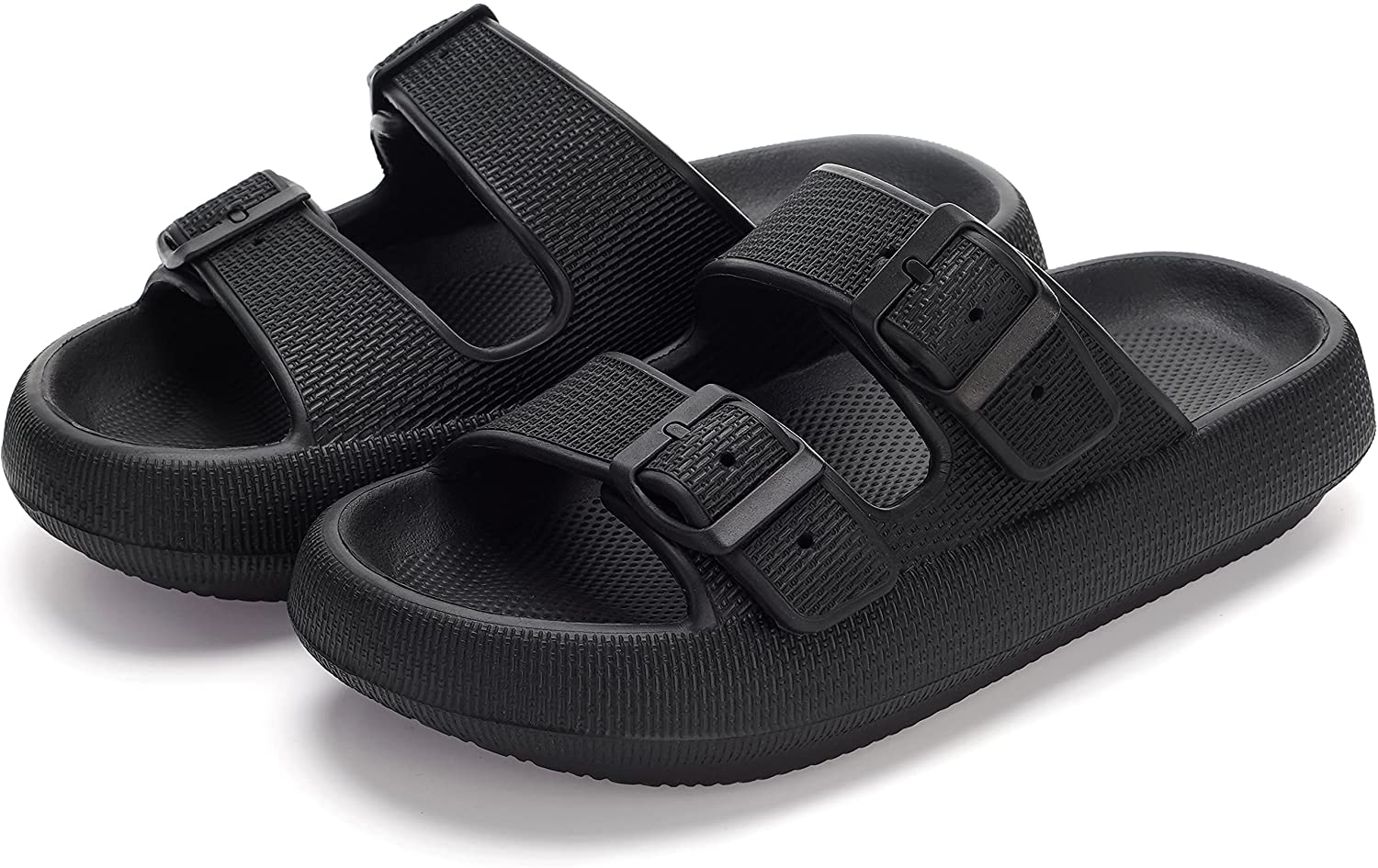 WHITIN Cloud Slides for Women Men Double Buckle Adjustable Pillow Slippers Ultra Cushion Sandals
