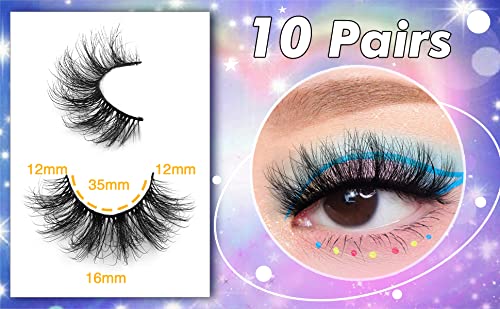 wiwoseo Eyelashes Natural Faux Mink Lashes Wispy Fluffy Curly 3D Effect Fake Eyelashes 10 Pairs Pack