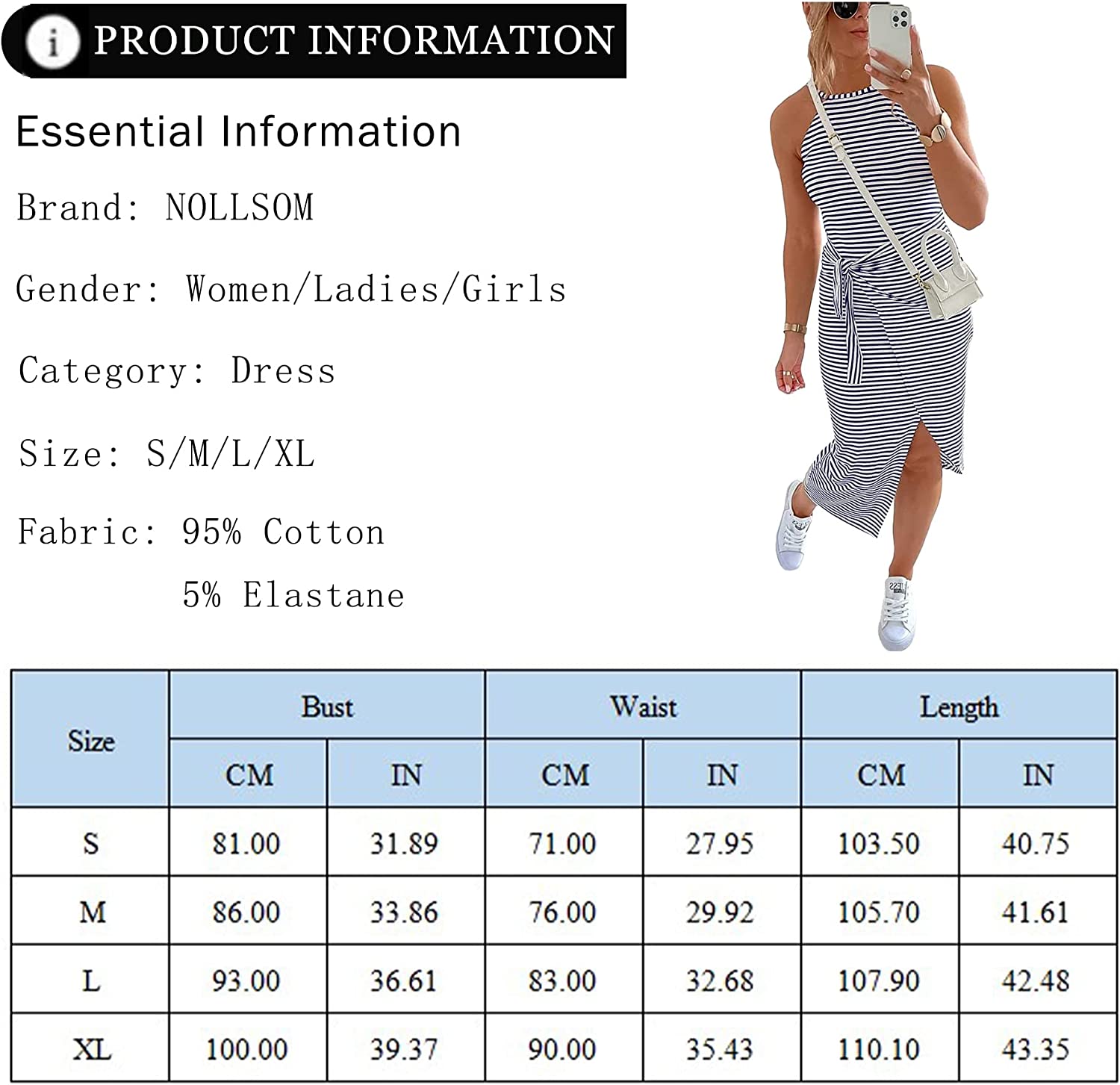 Women Casual Sleeveless Striped Tank Midi Dresses Halter Neck Ruched Bodycon Dresses Tie Waist T Shirt Summer Dress