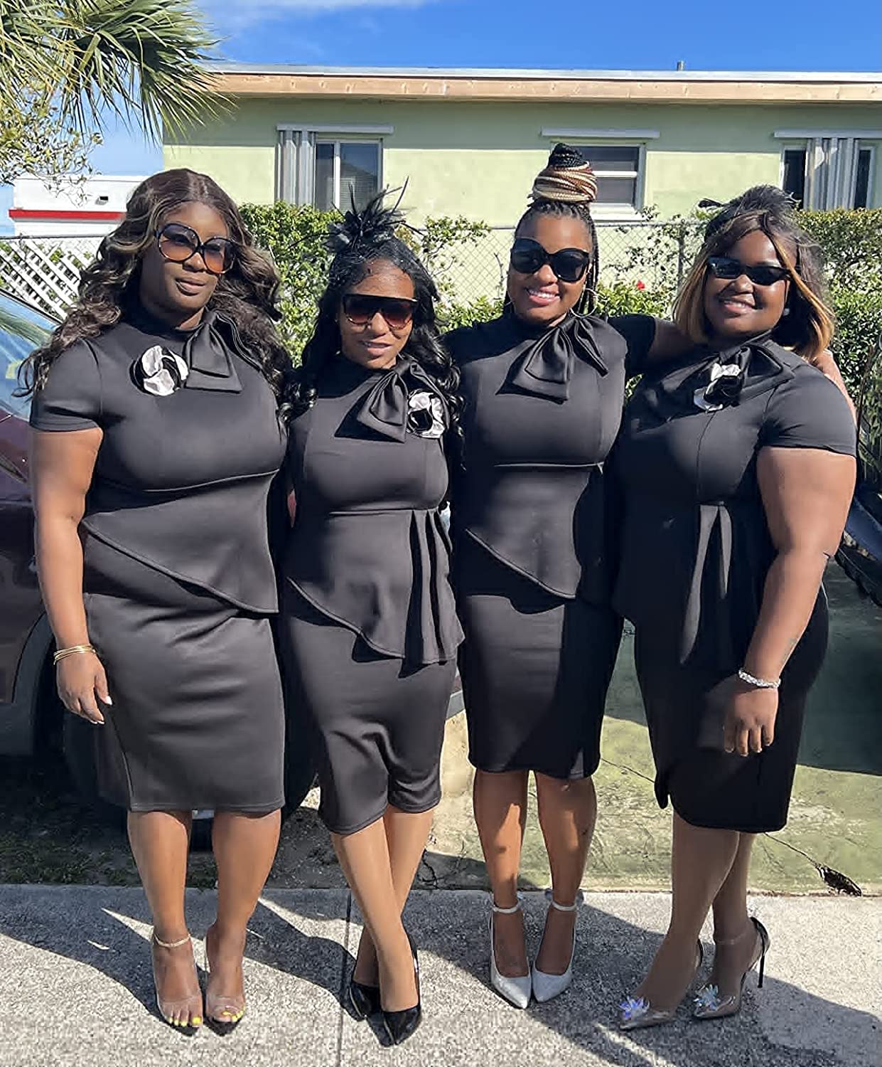 Women Fashion Peplum Bodycon Short Sleeve Bow Club Ruffle Pencil Party Dress