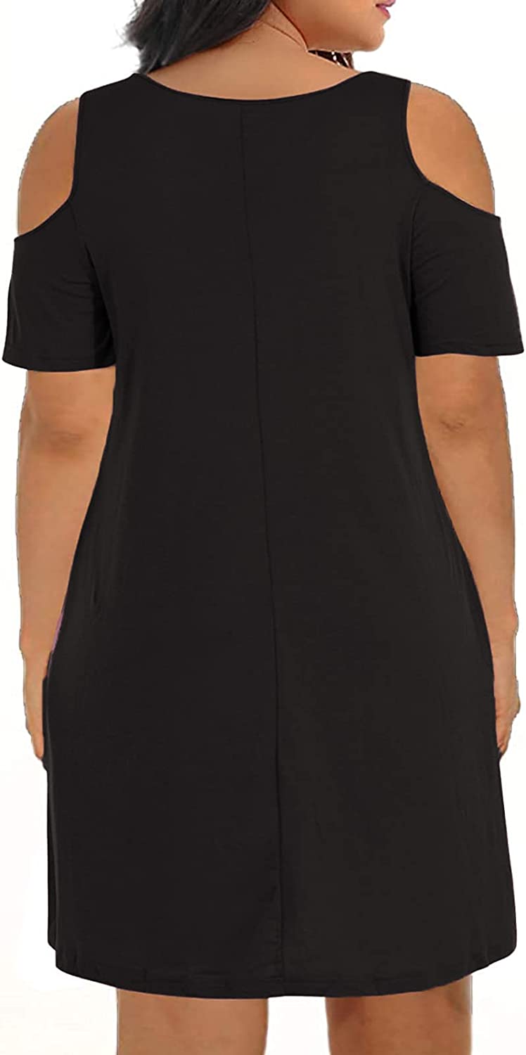Women Plus Size Dresses Short Sleeve Cold Shoulder Casual T-Shirt Swing Dress with Pockets
