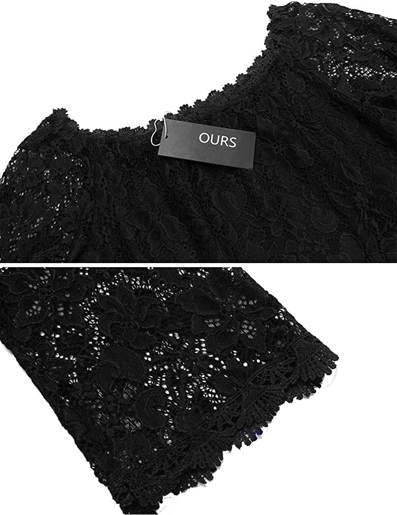 Women's Casual Off Shoulder Lace Shift Loose Mini Dress with 3/4 Sleeve