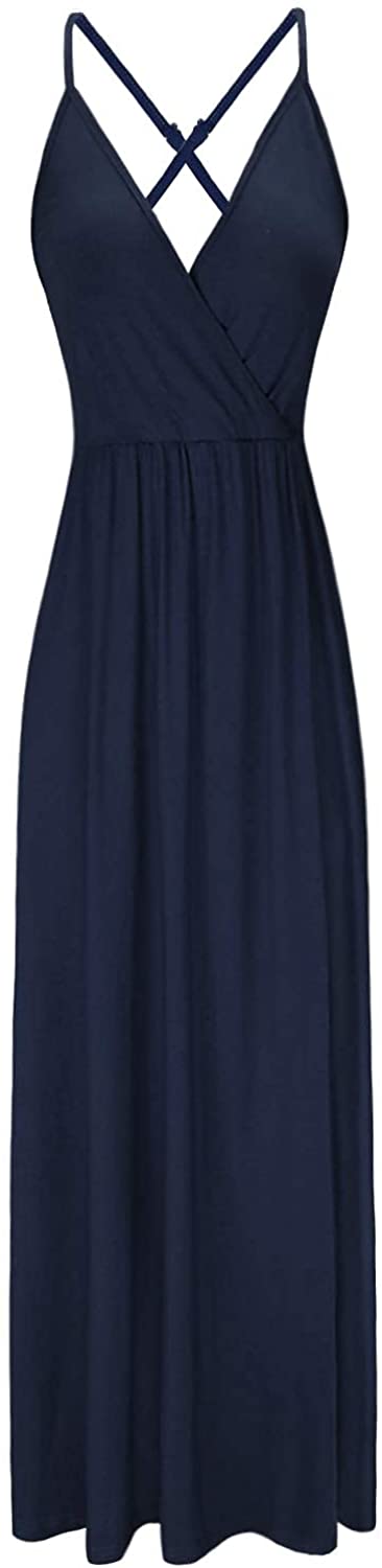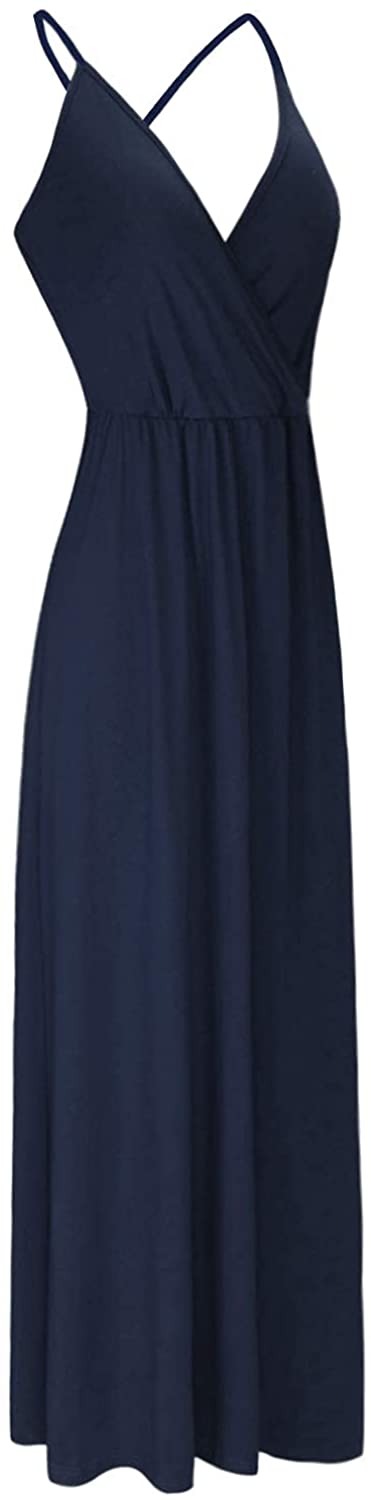 Women's Deep V-Neck Casual Dress Summer Backless Floral Print/Solid Split Maxi Dress for Beach Party