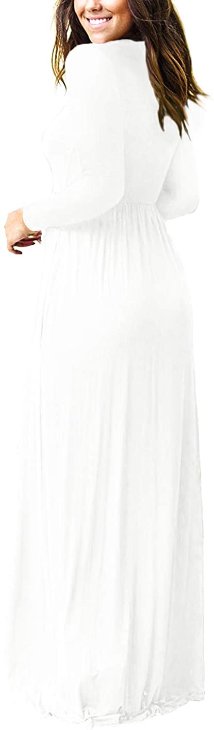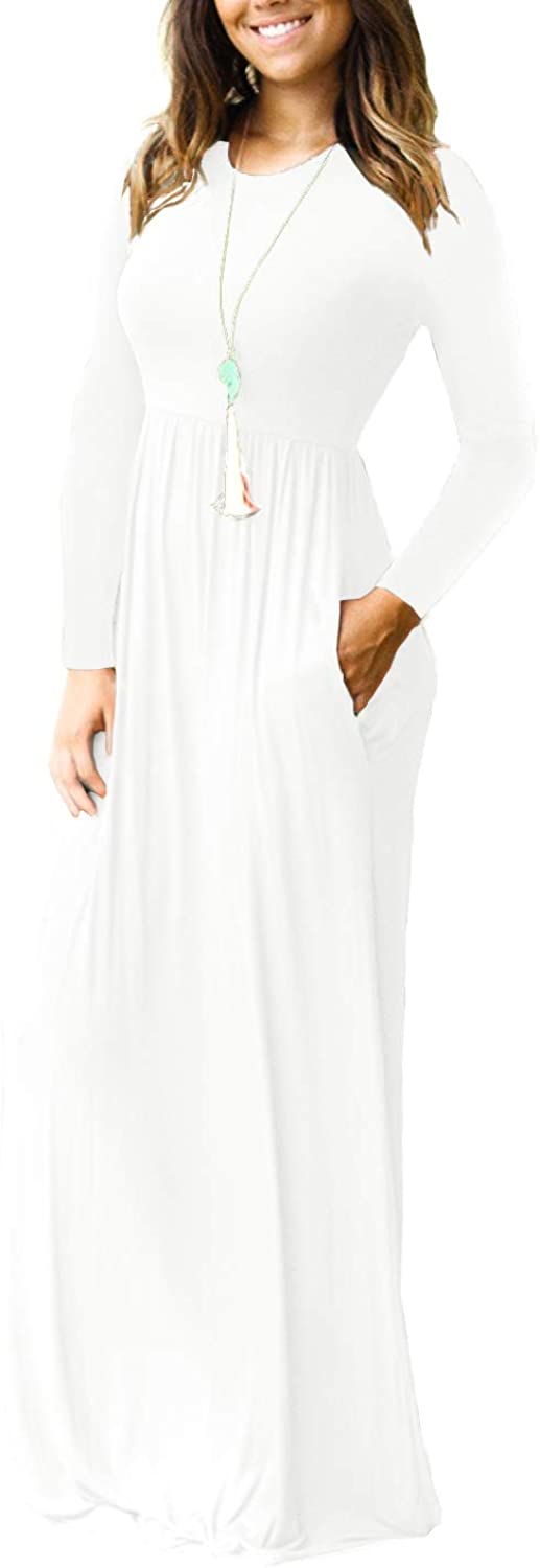 Women's Long Sleeve Loose Plain Maxi Dresses Casual Long Dresses with Pockets