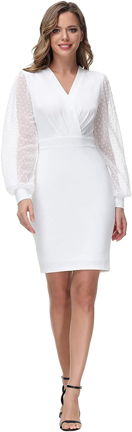 Women's Pencil Work Dresses Long Sleeve V Neck Bodycon Business Dress Elegant Cocktail Party