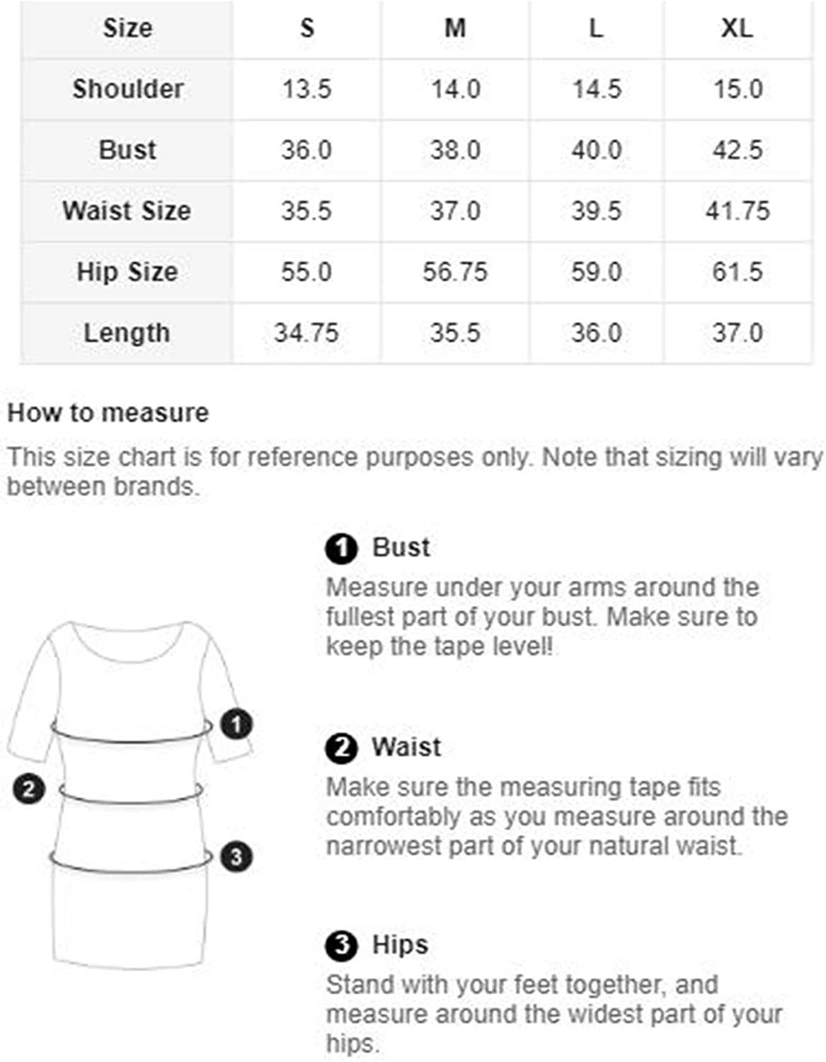 Size Chart: Small: Bust: 37.0 inch, Length: 31.9 inch Medium: Bust: 38.6 inch, Length: 32.3 inch Large: Bust: 40.2 inch, Length: 32.7 inch
