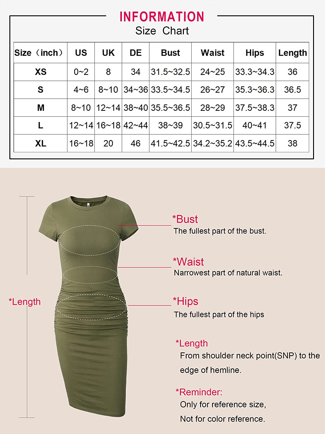 Women's Short Sleeve Ruched Casual Sundress Midi Bodycon T Shirt Dress