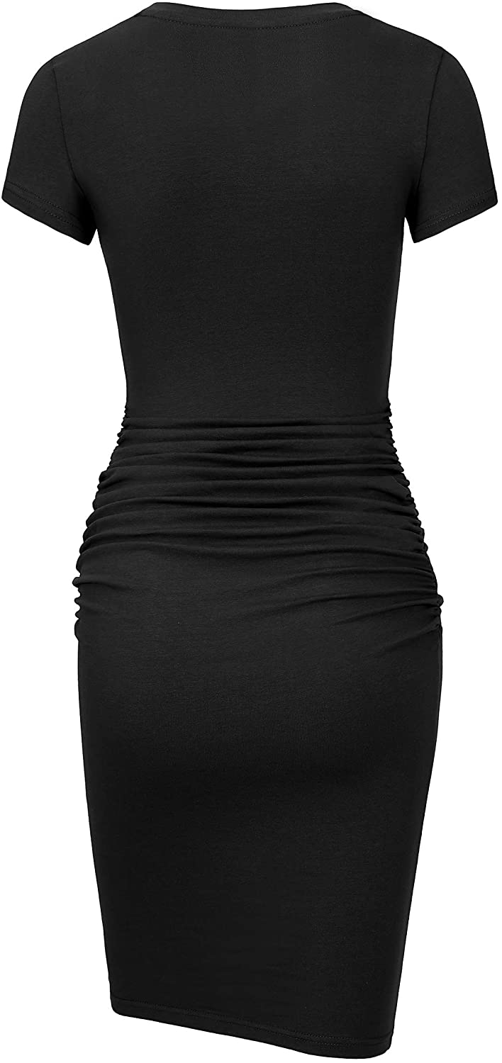 Women's Short Sleeve Ruched Sundress Knee Length Casual Bodycon T Shirt Dress