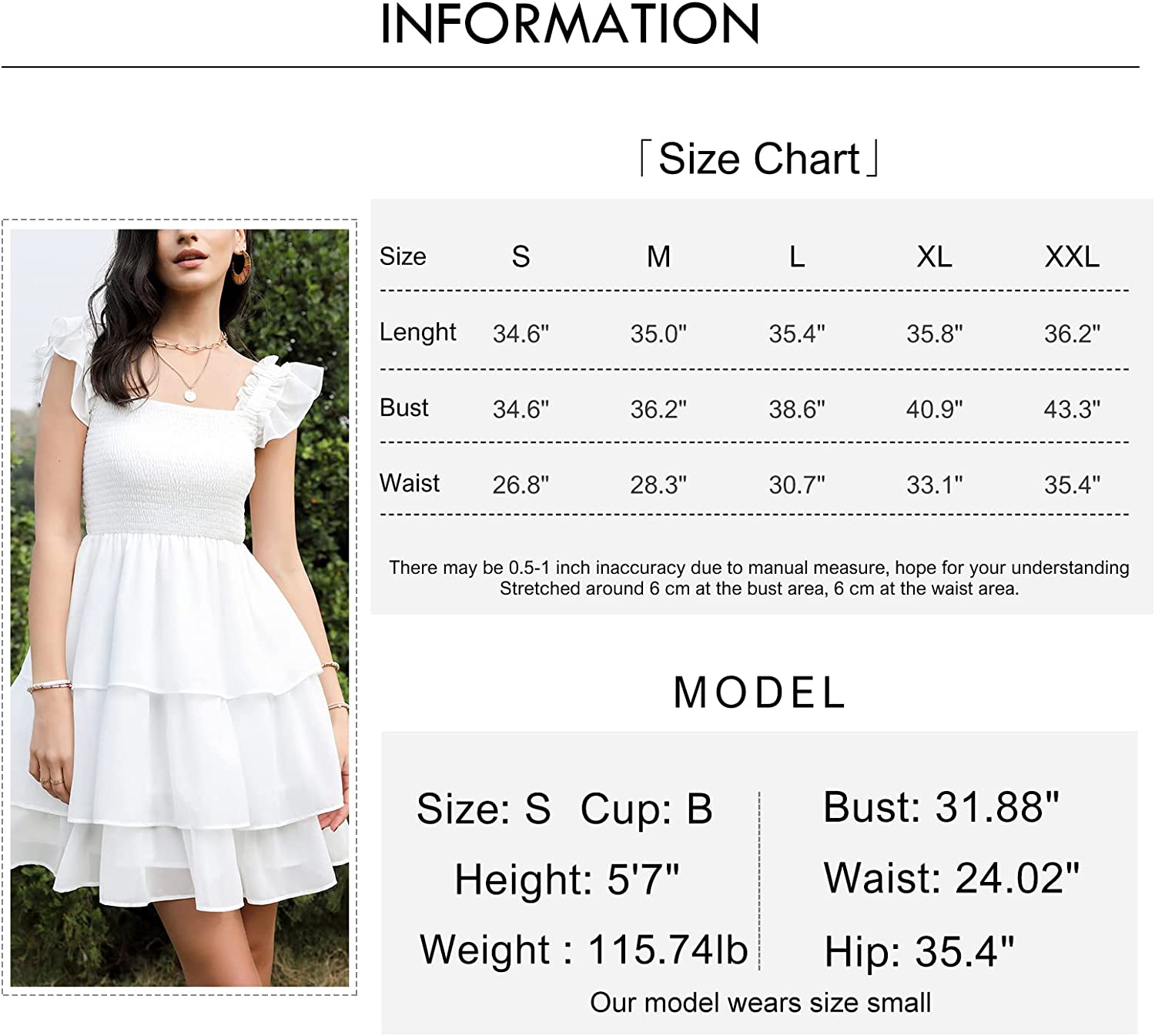 Womens Square Neck Sleeveless Ruffle Dress High Waist Backless Tiered Smocked Strappy Casual Short Mini Dresses
