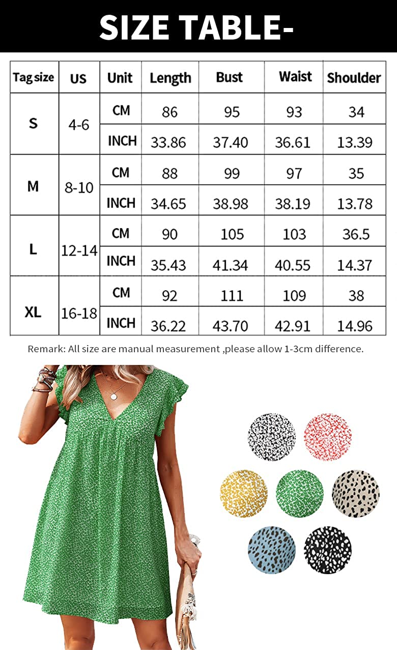 Women's Summer Casual Dress V Neck Ruffle Sleeve Loose Flowy Swing Shift Mini Dress