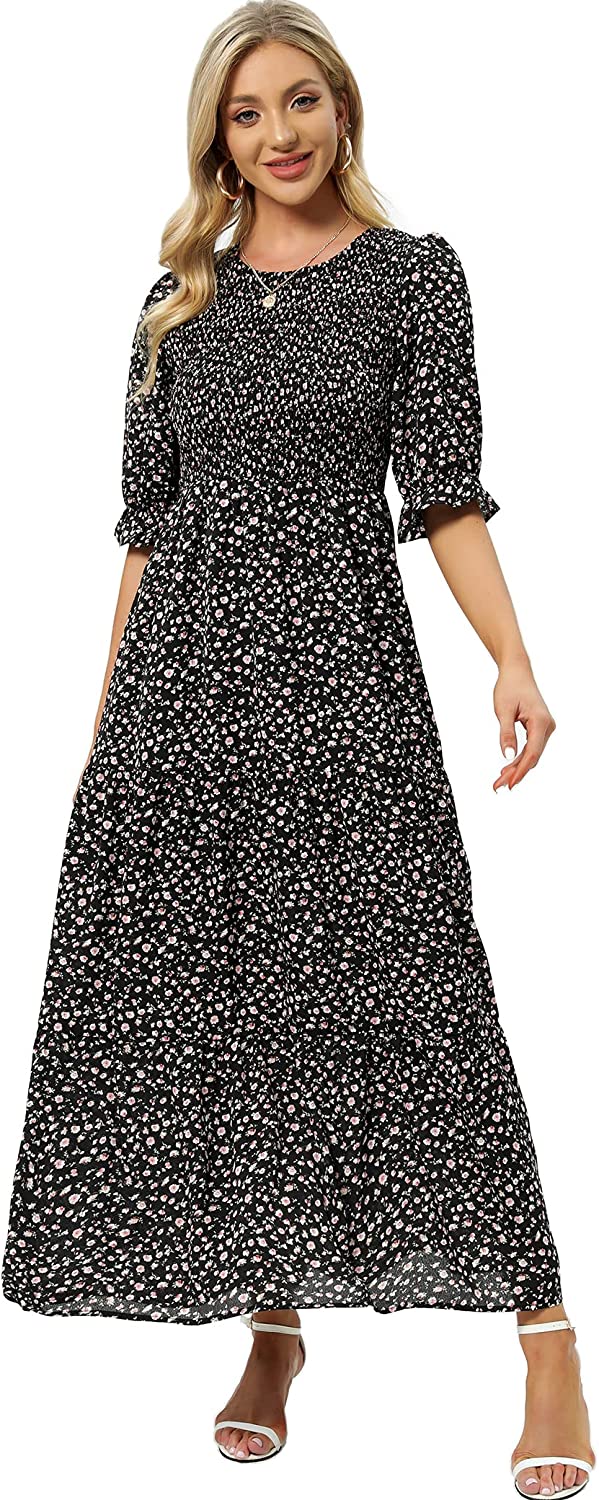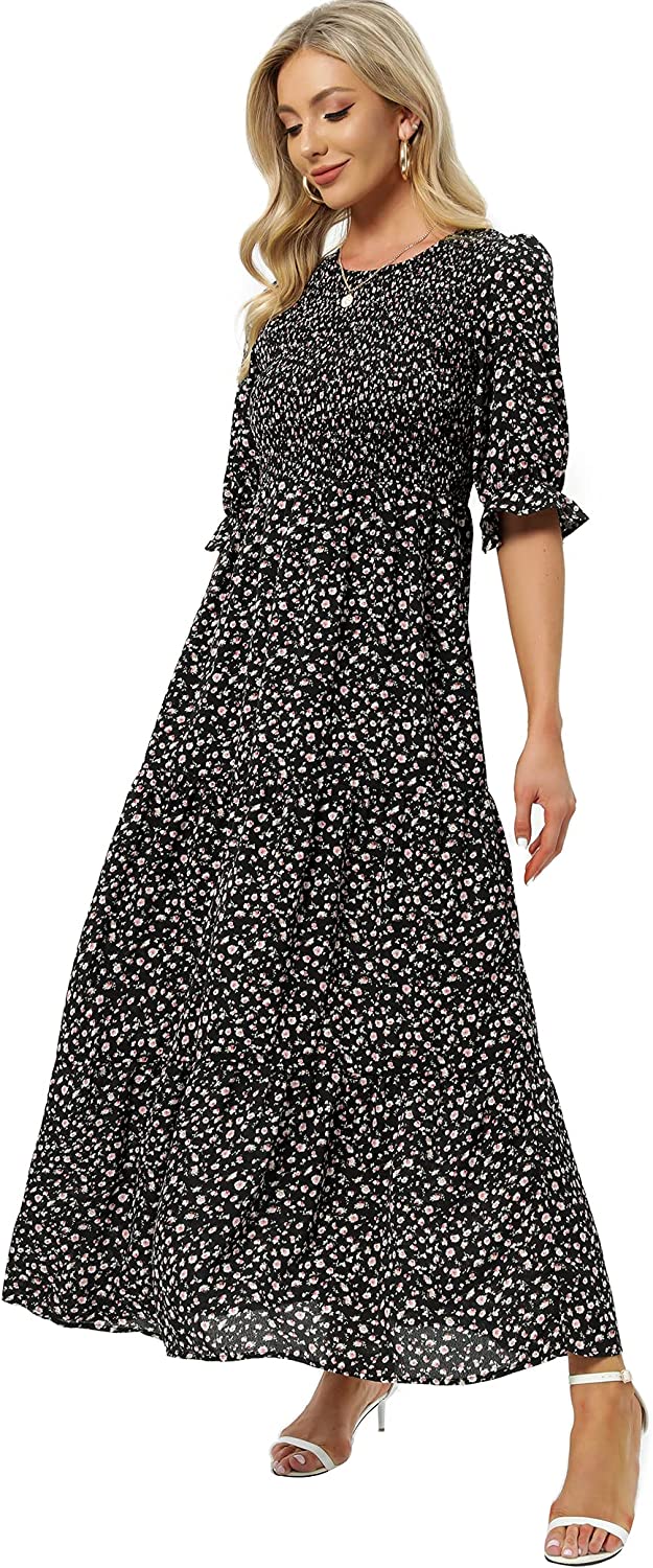 Womens Summer Casual Half Sleeve Bohemian Floral Tiered Maxi Dress