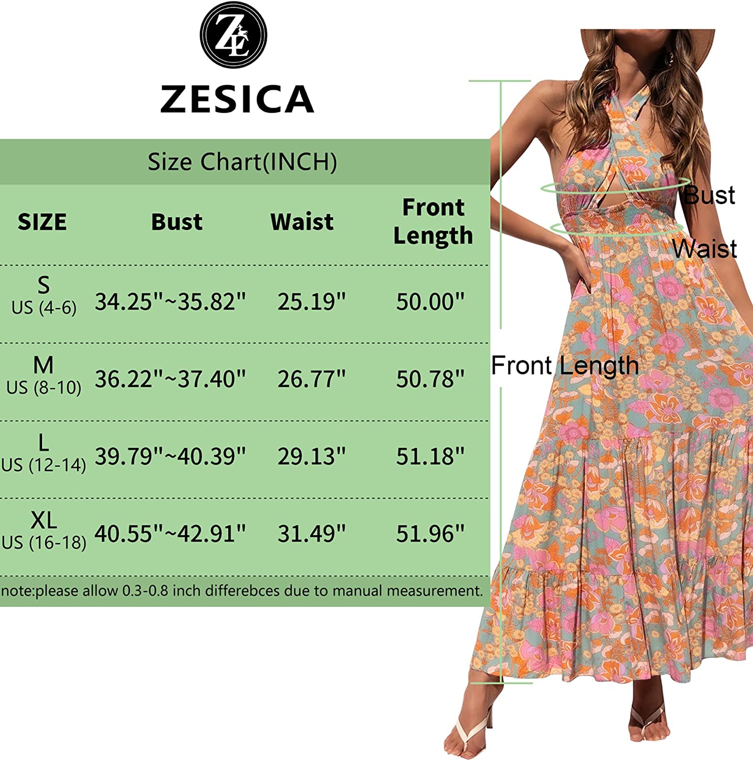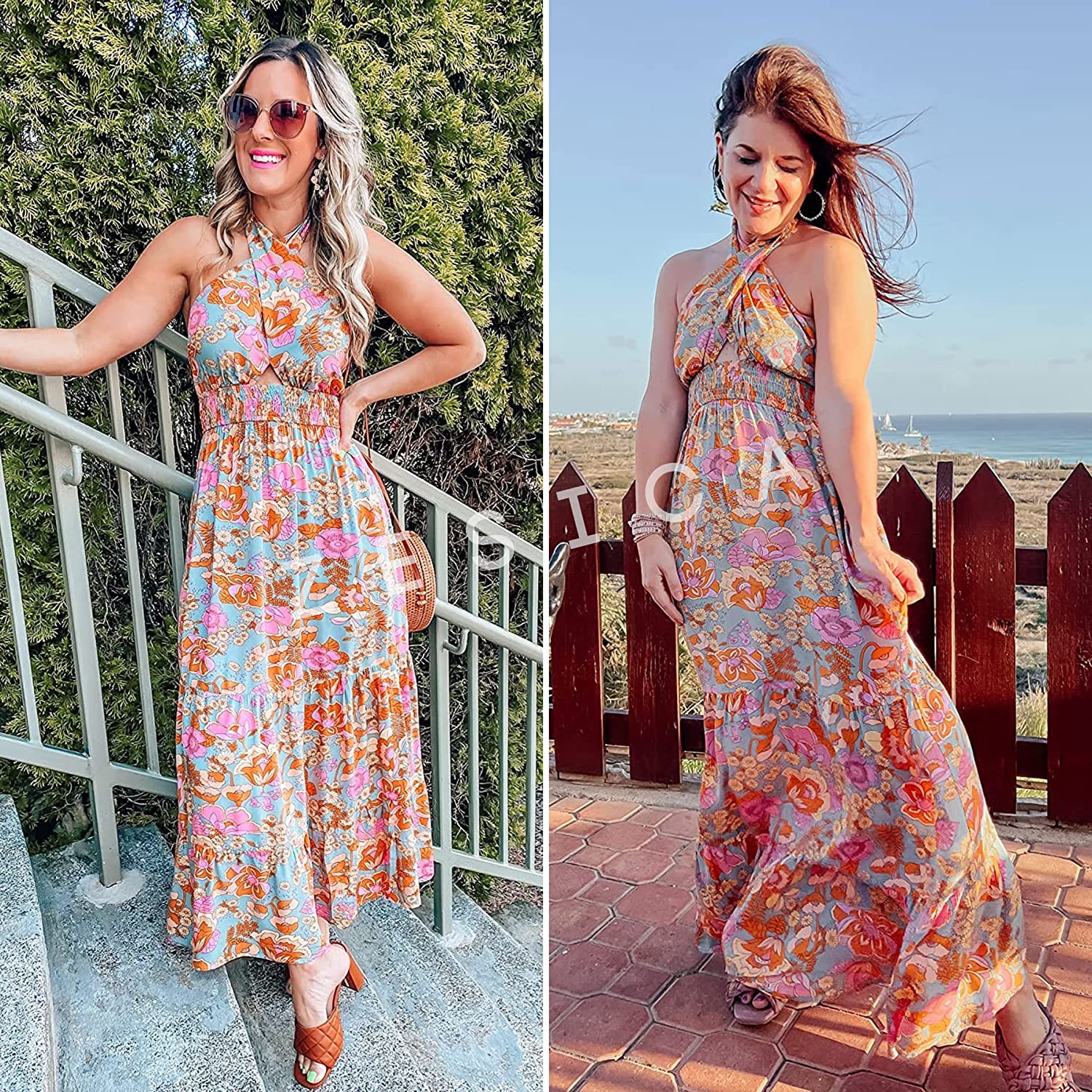 Women's Summer Crossover Halter Neck Sleeveless Plaid Cut Out Backless Flowy A Line Maxi Dress