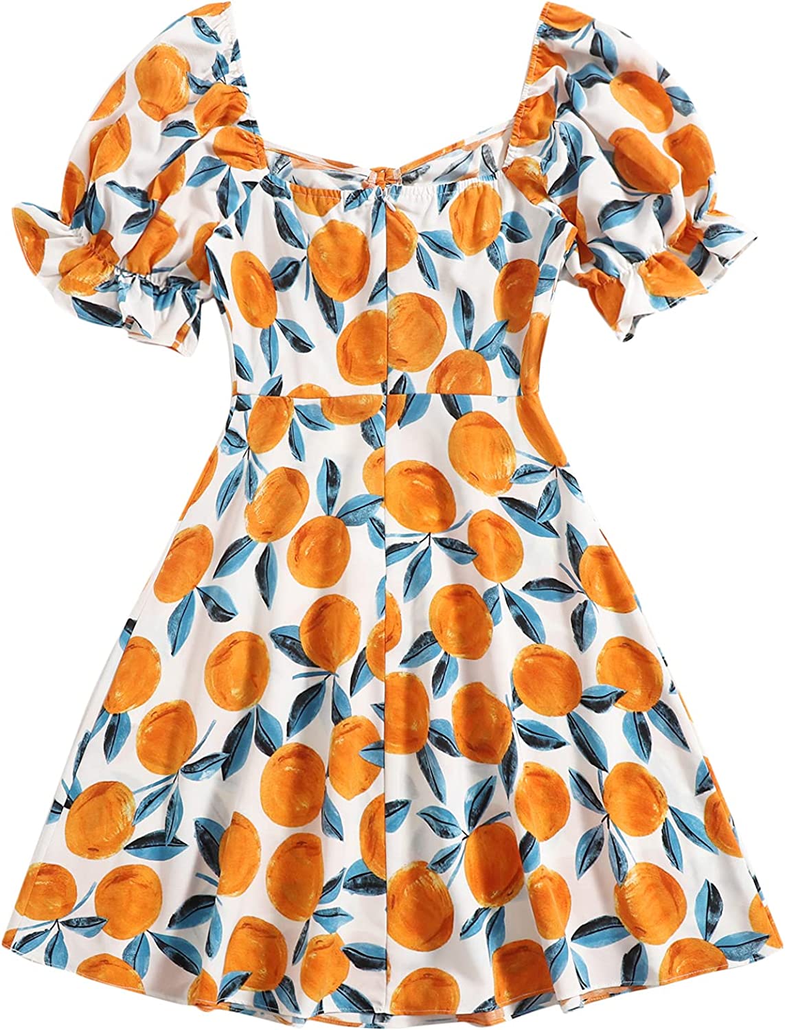 Women's Summer Drawstring Sweetheart Neck Puff Sleeve A Line Short Dress