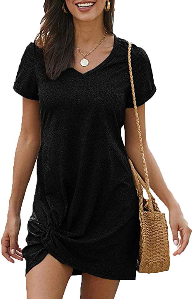 Women's Summer Twist Knot Tshirt Dresses Casual V Neck Short Sleeve Knot Dress