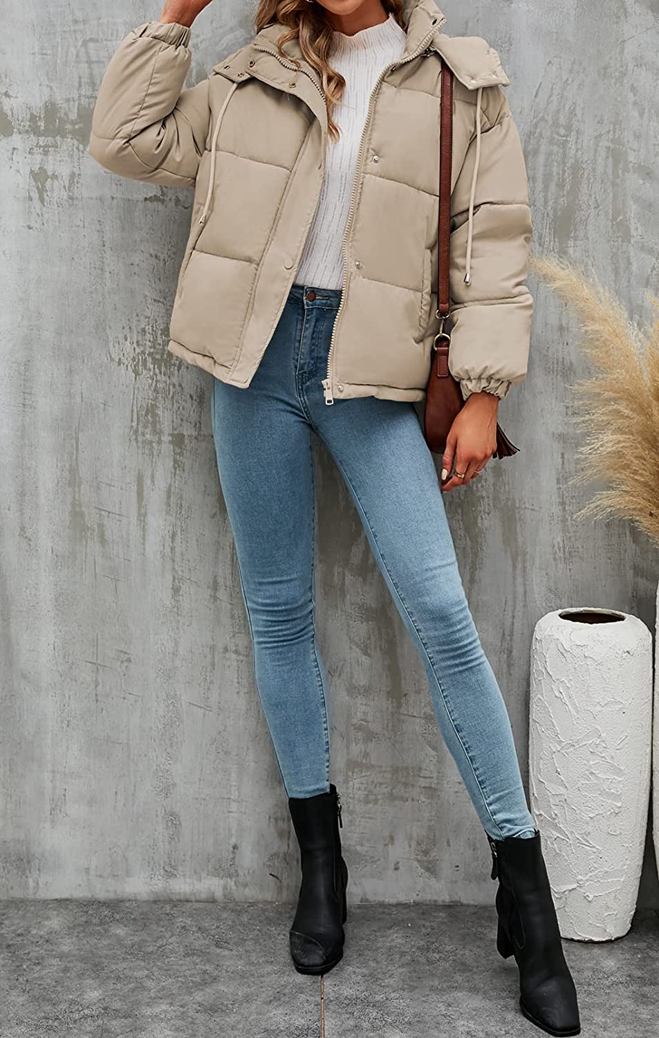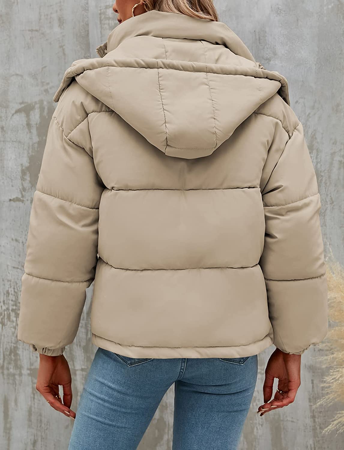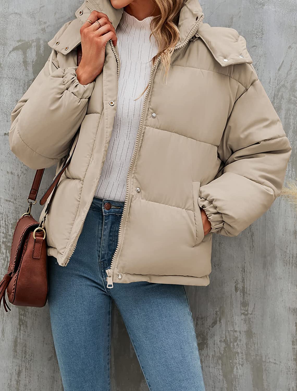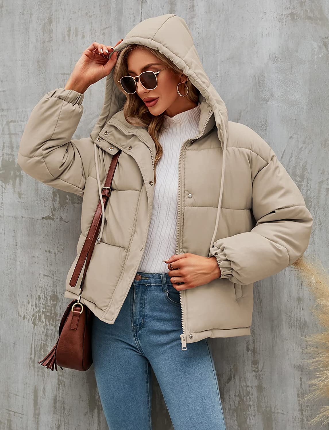 WOTOZR Women's Winter Hooded Puffer Jacket Oversized Long Sleeve Zip Up Quilted Short Down Coat with Pockets