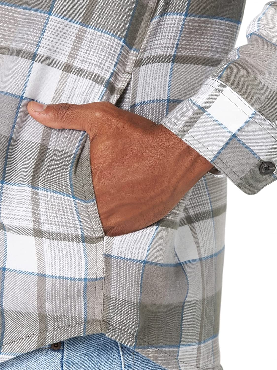 Wrangler Authentics Men's Long Sleeve Quilted Lined Flannel Shirt Jacket with Hood
