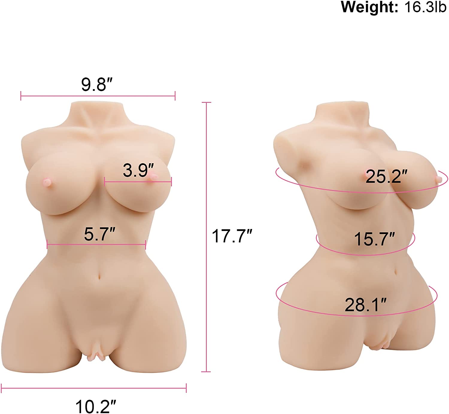 Y-NOT Adult Sex Doll Male Masturbator Stroker, 16.3lb Realistic Torso Sex Toy with Pussy Ass Boobs for Breast Vaginal Anal Sex with Heating Rod & Hermetic Seal for Tight Suction
