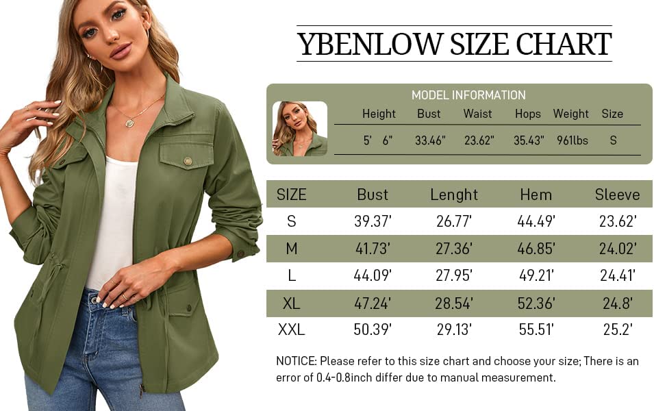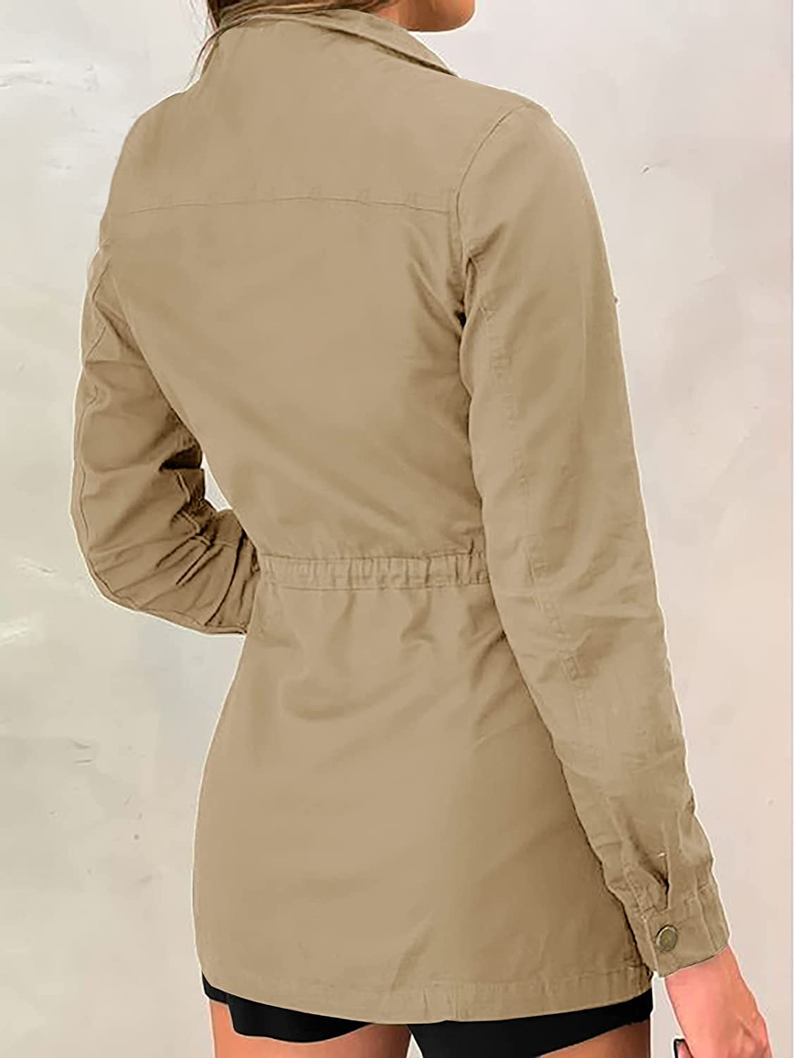 Ybenlow Womens Military Jacket Zip Up Lightweight Safari Utility Drawstring Casual Anorak Jackets with Pockets