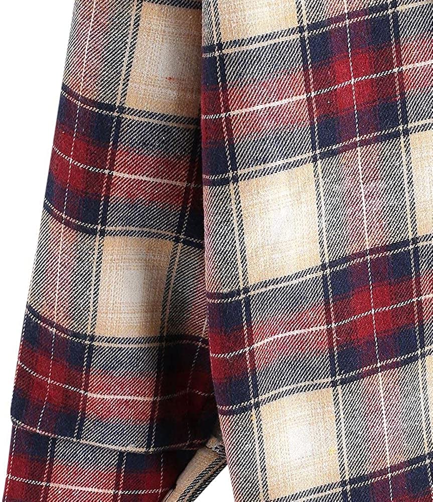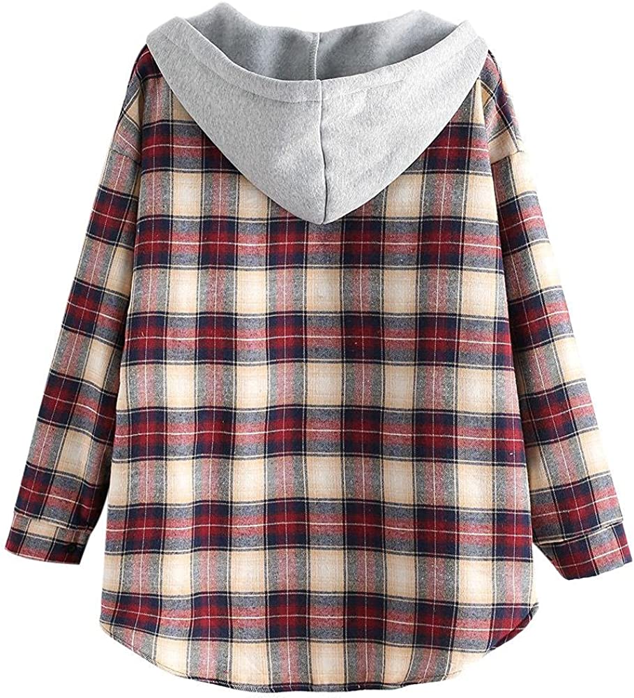 ZAFUL Women's Plaid Fleece Lined Hooded Jacket Button Up Oversized Fuzzy Coat Checkered Flannel Hoodie Jacket