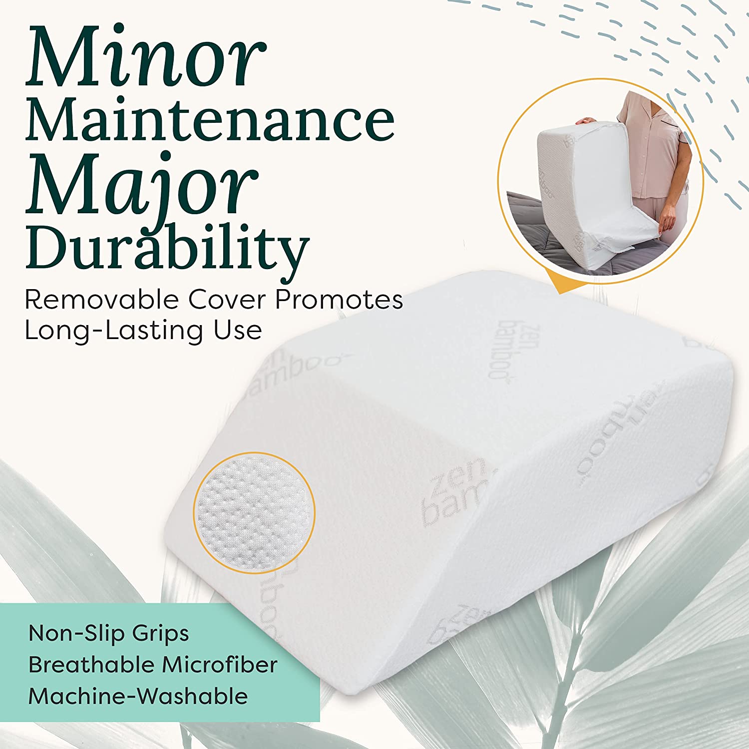 Zen Bamboo Wedge Pillows for Sleeping - Luxury Foam Leg Elevation Pillow for Leg & Back Discomfort w/ Removable Cover