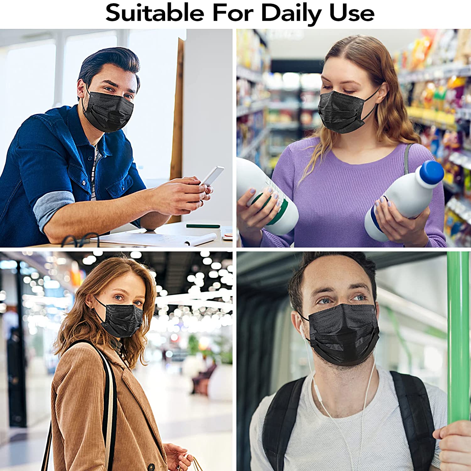 ZTANPS Face Mask,Pack of 50 Black Disposable Face Mask for Men & Women